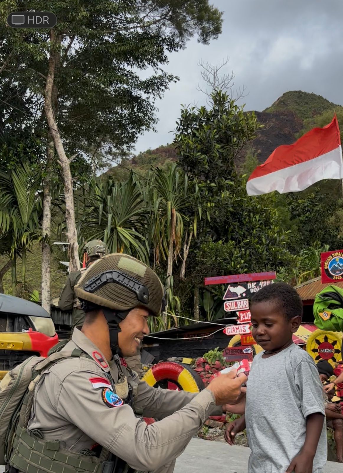 Momen sederhana ini menjadi cerminan semangat kasih sayang, kepedulian, dan persaudaraan yang terus ditanamkan untuk menjaga kedamaian di Tanah Papua.