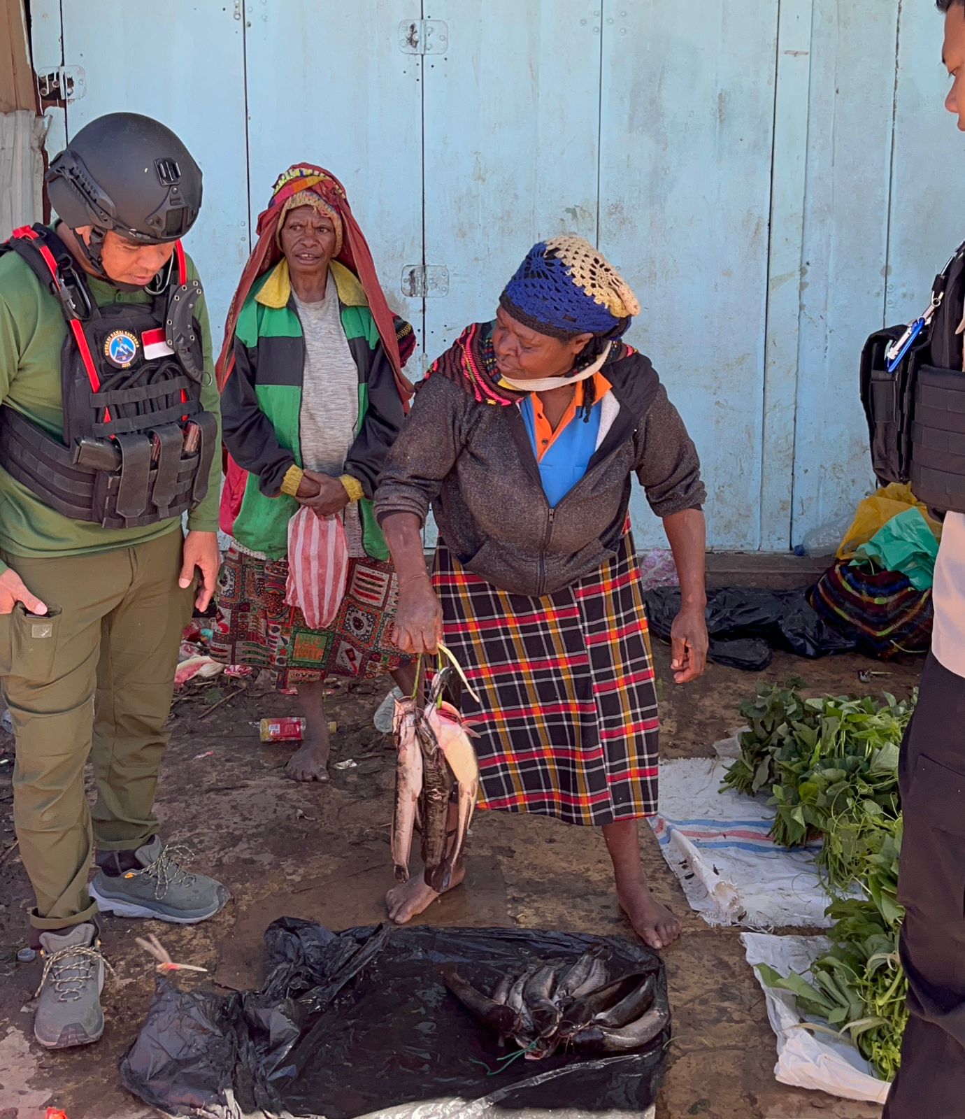“Kami hadir bukan hanya untuk menjaga keamanan, tetapi juga untuk ikut mendorong pertumbuhan ekonomi masyarakat kecil. Dengan berbelanja langsung kepada mama-mama pedagang lokal, kami ingin menunjukkan bahwa aparat dekat dengan rakyat dan peduli pada kesejahteraan mereka,” ujar Brigjen Faizal.