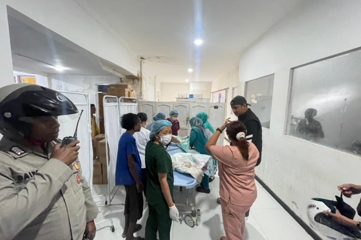 “Hasil pemeriksaan awal, bayi dalam keadaan hidup. Barang-barang yang turut diamankan berupa satu set baju bayi warna hijau, kain bayi warna putih, dan sebuah tas totebag warna biru. Saat ini bayi sudah ditangani pihak RSUD Yowari,” ujar Kasat Reskrim.