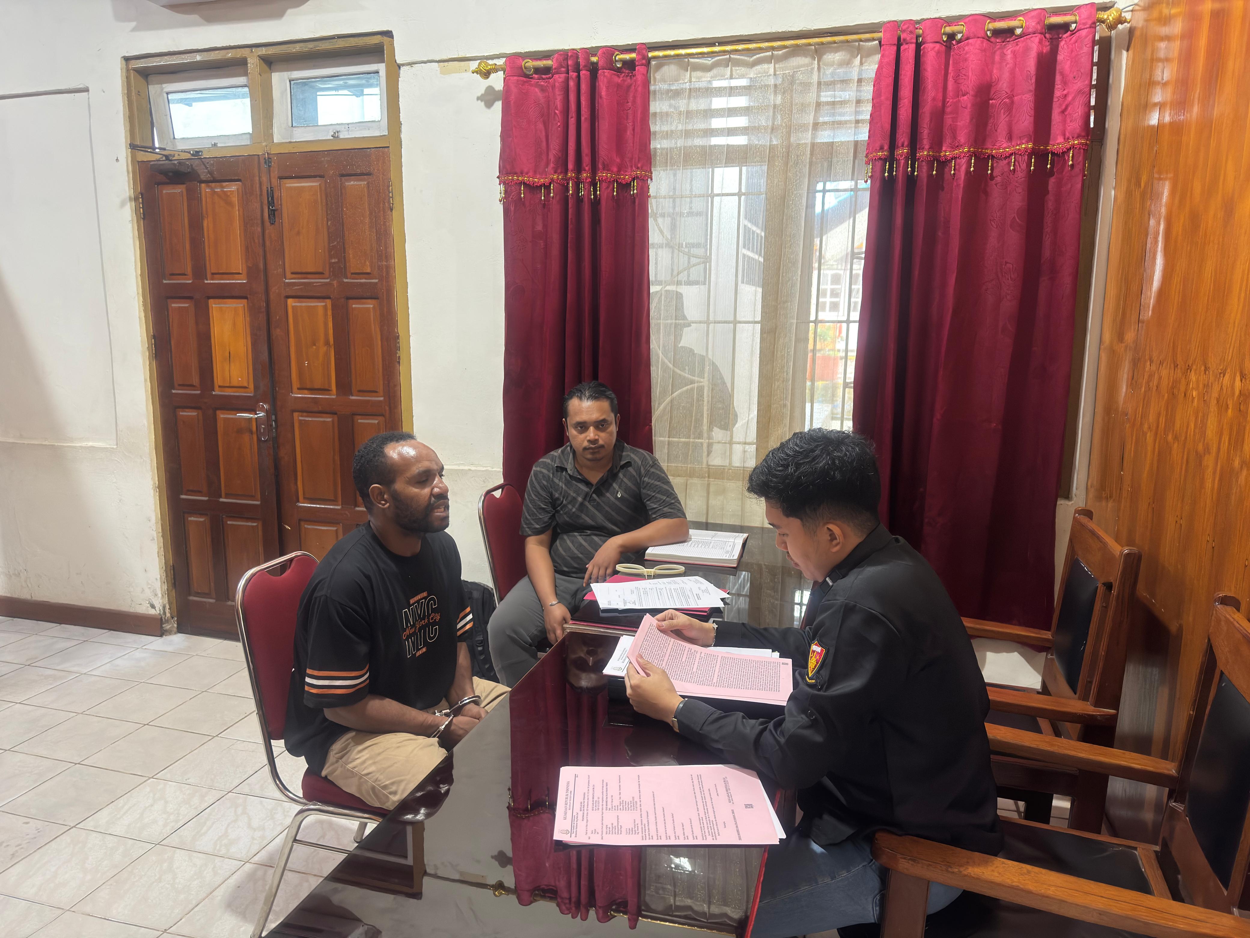 Setibanya di lokasi, pada pukul 11.10 WIT JPU melaksanakan pemeriksaan terhadap tersangka dan barang bukti di ruang Seksi Pidana Umum Kejaksaan Negeri Nabire, yang diterima langsung oleh Jaksa Penuntut Umum As’ad Djaelani Sibghatullah BW, S.H. Kegiatan berakhir pada pukul 11.40 WIT dengan situasi aman dan lancar.
