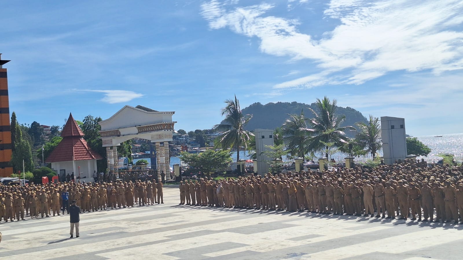 Apel gabungan berlangsung di halaman kantor Gubernur Dok II Jayapura, Senin (30/10/2025) pagi, dan diikuti oleh sedikitnya 3.000 dari total 8.000 ASN Pemprov Papua.