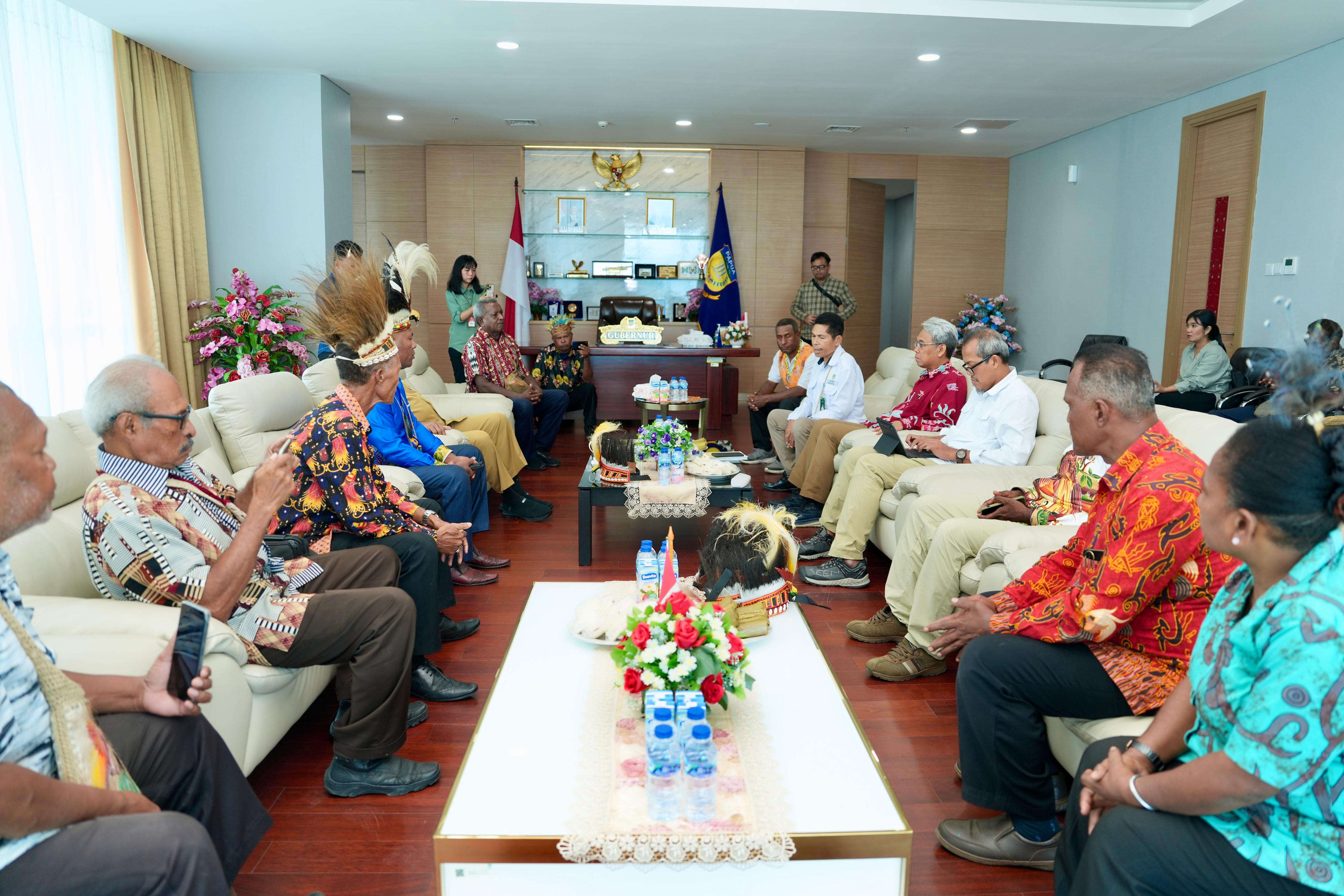 Hal itu disampaikan Gubernur Fakhiri saat menerima kunjungan kerja Direktur Jenderal Konservasi Sumber Daya Alam dan Ekosistem (KSDAE) Kementerian Kehutanan adalah Dr. Satyawan Pudyatmoko beserta masyarakat adat Tabi-Saireri di ruang kerjanya, Jalan Soa Siu Dok II Jayapura, Papua, Selasa (28/10/2025).