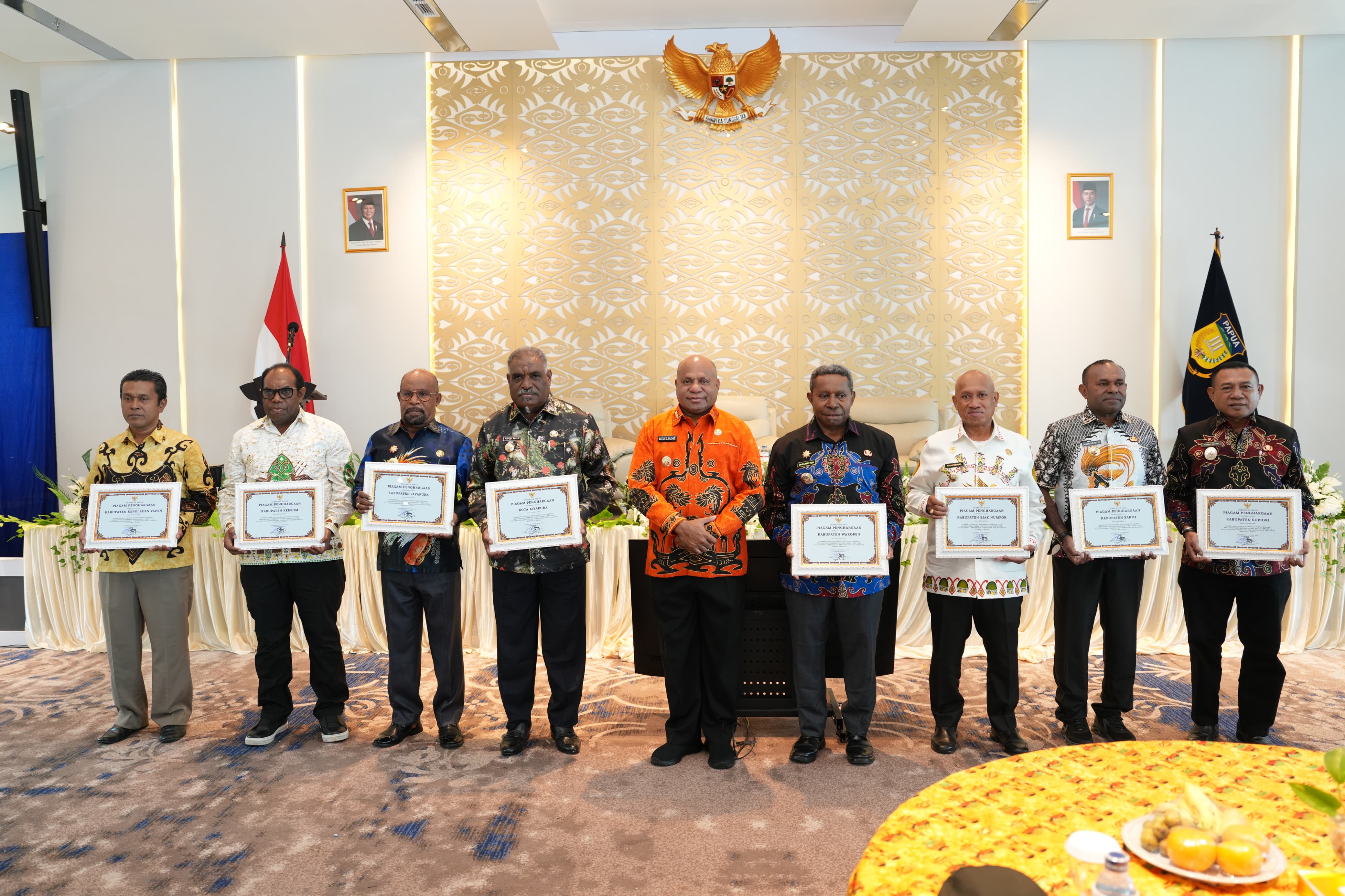 Jayapura, semuwaberita.com - Gubernur Papua, Matius Fakhiri memberikan apresiasi kepada 8 Bupati dan 1 Wali Kota atas kerja kerasnya dalam menurunkan angka stunting serta mengurangi kemiskinan ekstrem di daerahnya.