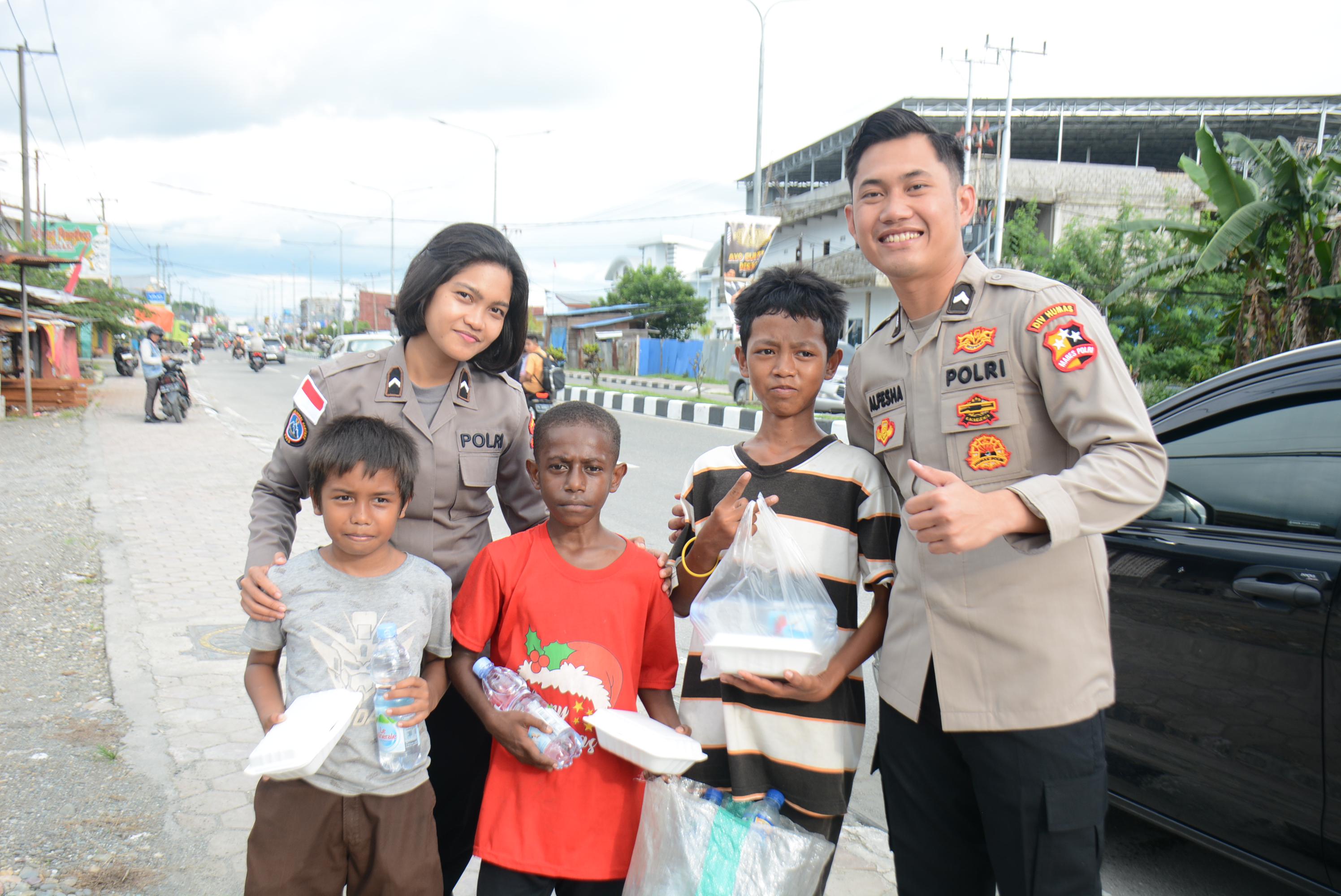 Selain membagikan makanan, personel juga menyempatkan diri untuk berbincang santai dengan warga sekitar guna mempererat hubungan antara aparat dan masyarakat. Kegiatan ini diikuti oleh personel Satgas Humas Ops Damai Cartenz 2025, Bripda Annisa Mahardika dan Bripda Alfesa Hafiz Bagaskara.