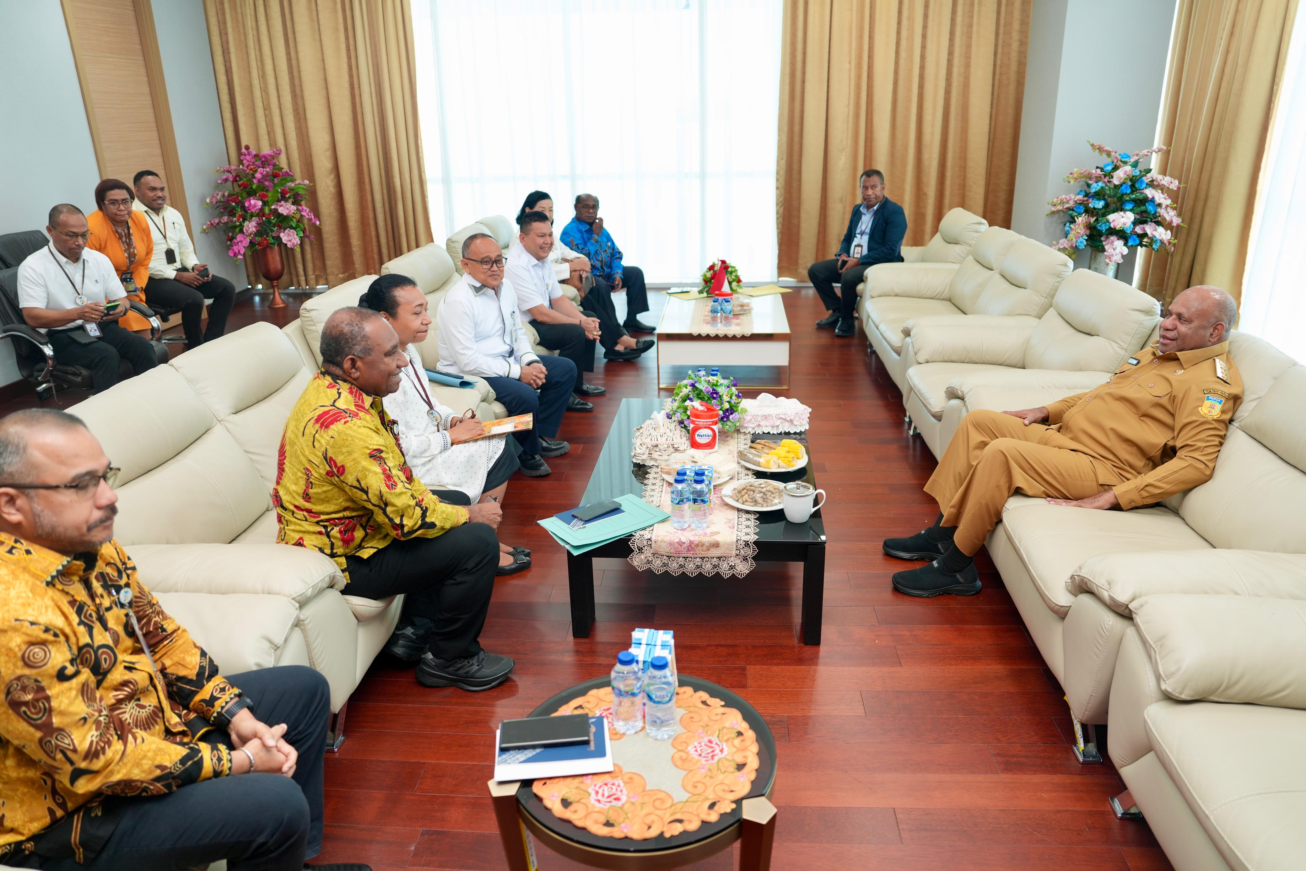Jayapura, semuwaberita.com - Gubernur Papua, Matius Fakhiri menerima kunjungan silaturahmi Direksi dan Dewan Komisaris Bank Papua, di ruang kerjanya, Senin (03/11/2025).
