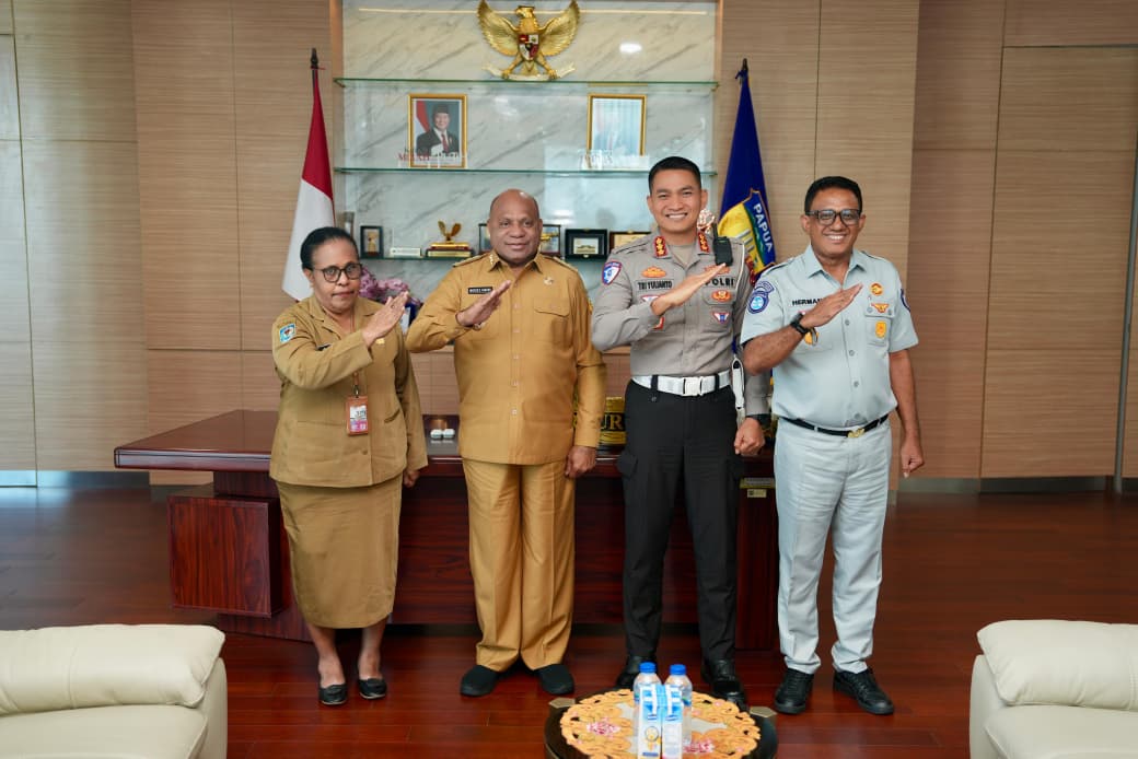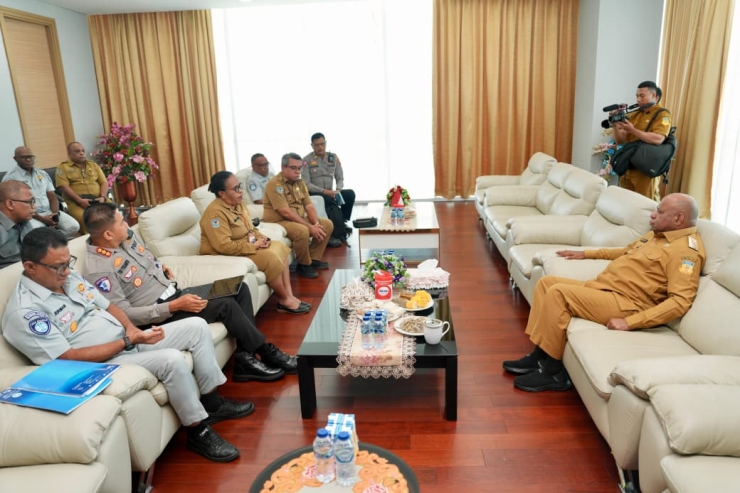 Jayapura, semuwaberita.com - Tim Pembina Samsat Papua Raya terdiri dari PT Jasa Raharja Cabang Papua, Direktorat Lalu Lintas Polda Papua, dan Badan Pendapatan Daerah atau Bapenda Provinsi Papua, melakukan pertemuan strategis dengan Gubernur Matius Fakhiri, di ruang kerja Gubernur, Senin (03/11/2025) pagi. Pertemuan itu untuk membahas inisiatif peningkatan Pendapatan Asli Daerah (PAD).