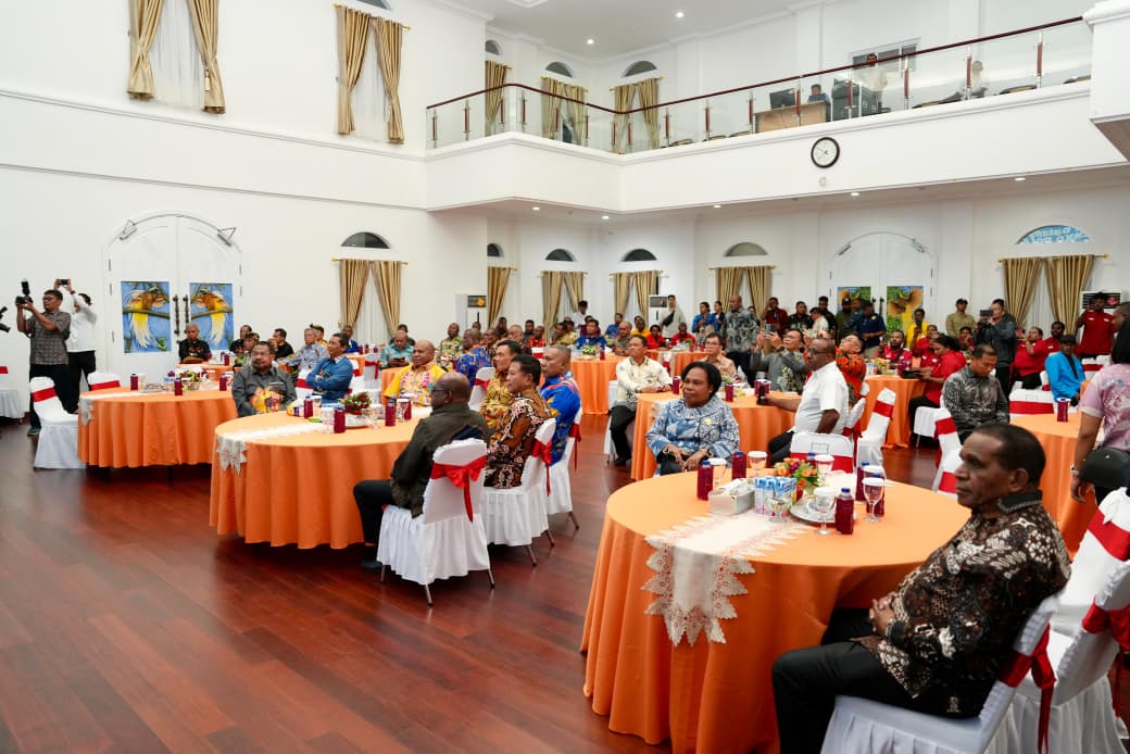 Jayapura, semuwaberita.com - Gubernur Papua, Matius Fakhiri dan jajaran Forkopimda Papua menyambut hangat kehadiran Menteri Koordinator Bidang Politik dan Keamanan Republik Indonesia, Jenderal TNI (Purn) Djamari Chaniago, dan Kepala Badan Intelijen Negara Republik Indonesia, Jenderal TNI (Purn) Muhammad Herindra dalam acara Ramah Tamah yang digelar di Gedung Negara Dok V, Kota Jayapura, Rabu (05/11/2025) malam.