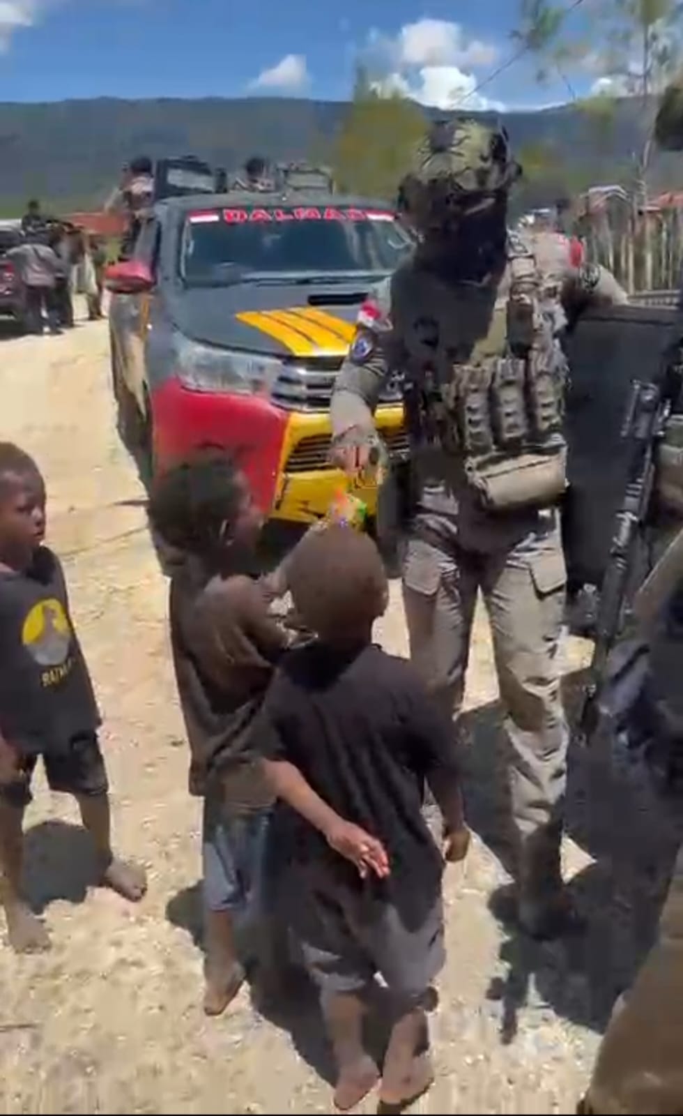 Dalam kegiatan tersebut, personel Satgas dan Polres Paniai membagikan beras serta berbagai bahan makanan lainnya kepada anak-anak dan masyarakat Distrik Bibida. Aksi sosial ini menjadi wujud kepedulian Polri terhadap kesejahteraan warga sekaligus memperkuat kedekatan antara aparat keamanan dan masyarakat.