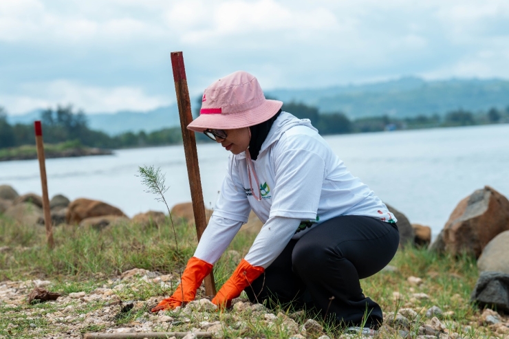 Secara spesifik, total 2.500 bibit yang disediakan terdiri dari 2.000 bibit tanam dan 500 bibit pemeliharaan. Ribuan bibit tanam tersebut didominasi oleh jenis pohon adaptif pesisir, yakni bibit cemara pantai (730 batang), bibit pinang (700 batang), bibit glodokan tiang (305 batang), dan bibit trembesi (265 batang).